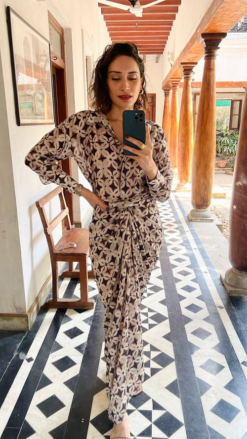 THE QUEEN'S EXOTIC EXPRESSO SAREE -